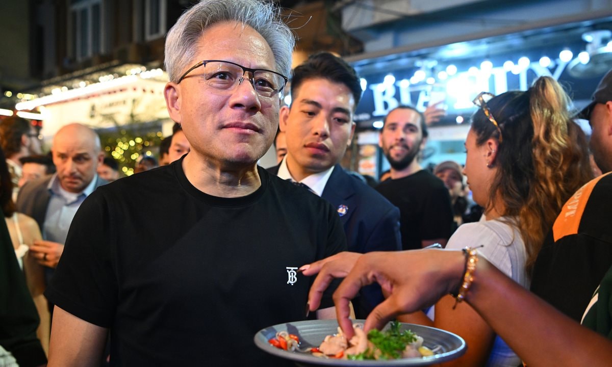 Vào tối 5/12, CEO NVIDIA cùng Thủ tướng Phạm Minh Chính uống bia, dạo phố cổ, sau khi dự lễ ký kết thành lập trung tâm R&D về AI tại Việt Nam. Ông chủ của hãng chip hàng nghìn tỷ USD được đánh giá là gần gũi, thân thiện, đồng thời sẵn sàng dừng lại để chụp ảnh, ký tặng cho người hâm mộ trên đường.